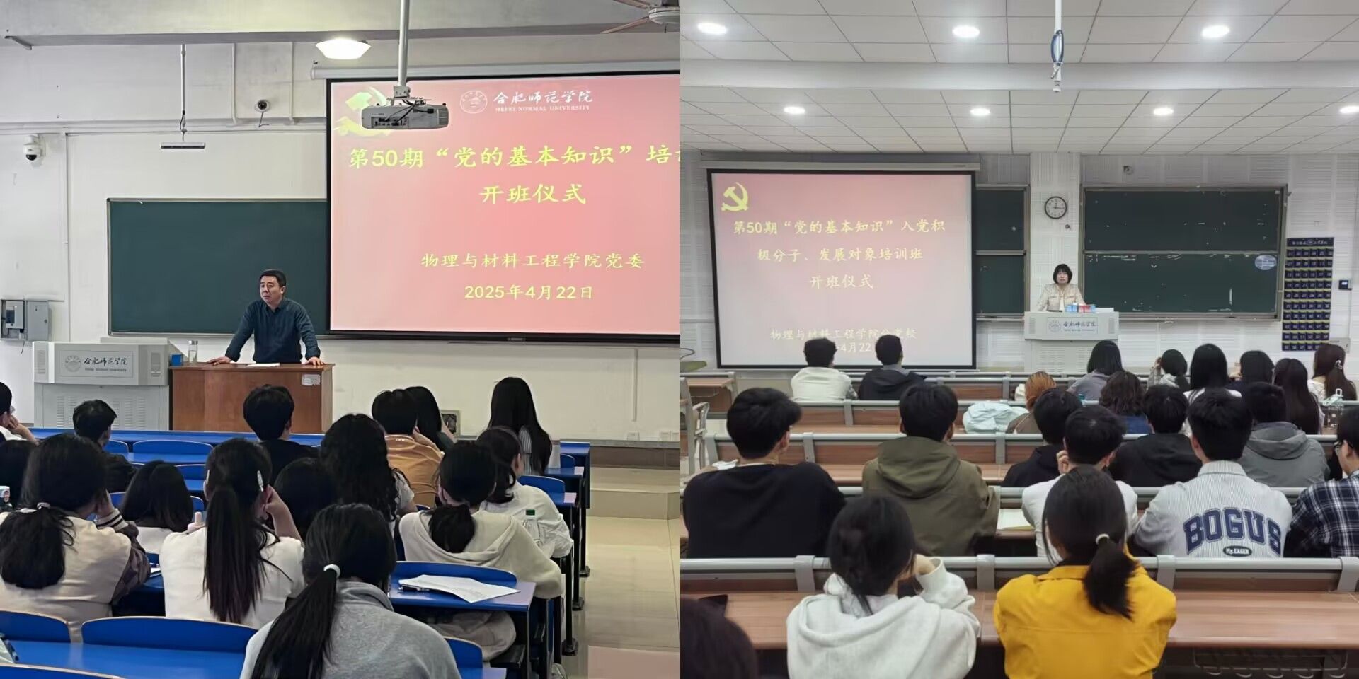 4月22日,allwincity万象城官方网站第50期“党的基本知识”培训班在锦绣、滨湖校区分别举办开班仪式。学院党委书记吴震、党委副书记夏文玲分别出席开班仪式,培训班班主任韩翔、辅导员张玲俐、吴梦云、费文清、李妍、沙从浩及全体学员参加开班式。