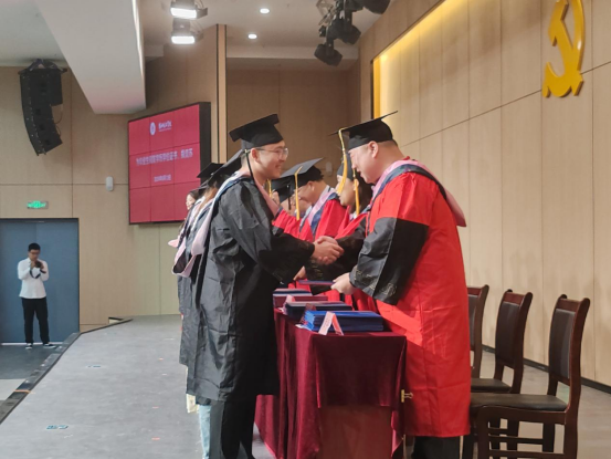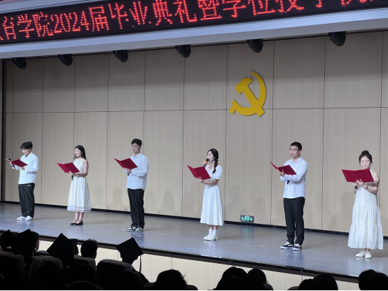 毕业典礼在雄壮的国歌声中拉开帷幕,副院长谢贤德宣读了《304永利集团官网入口2024届本科毕业生学士学位授予决定》后,出席仪式的领导和教研室主任分别为毕业生代表颁发学历、学位证书,并进行拨穗正冠与合影留念。