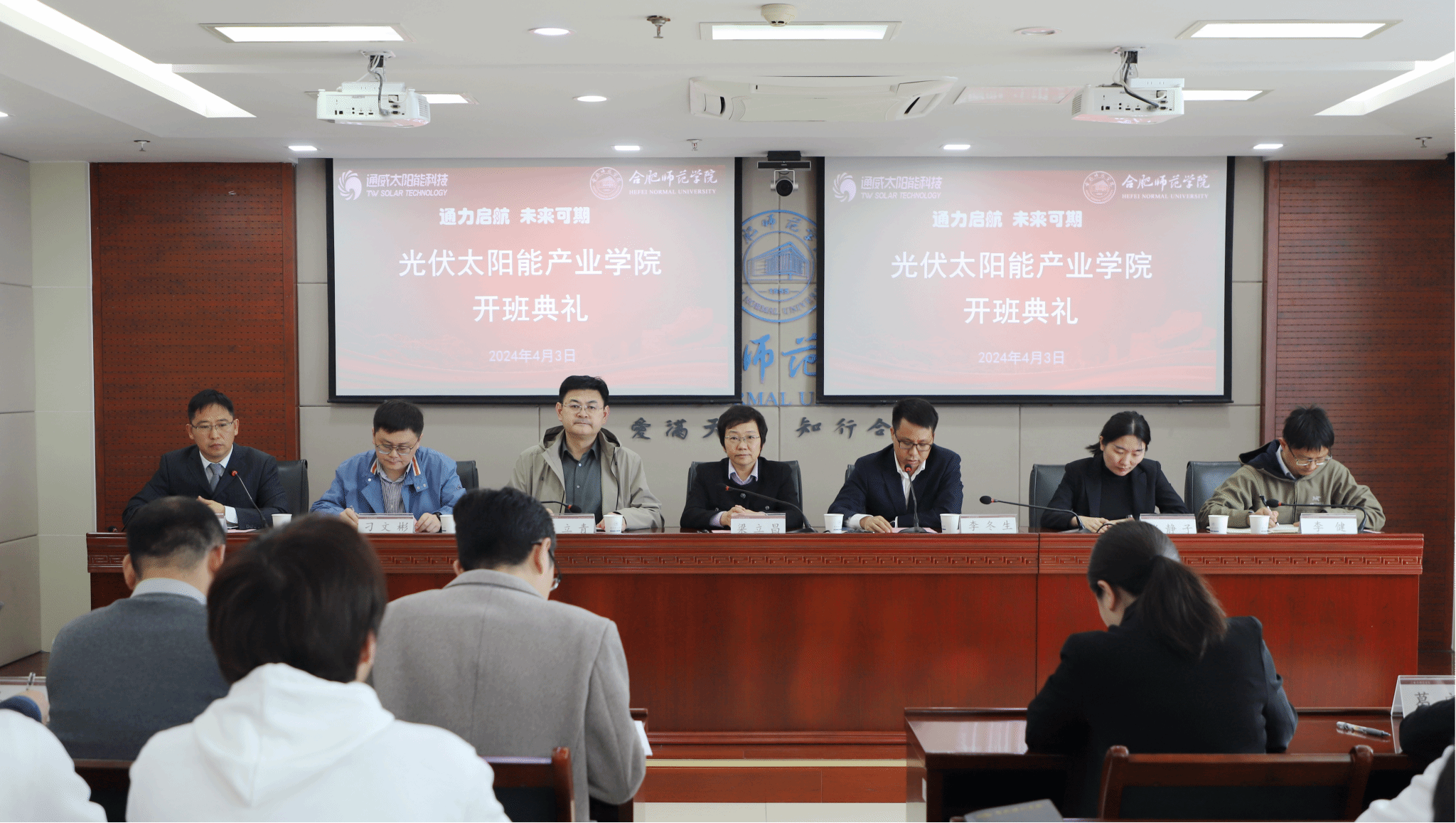 4月3日上午,学院在锦绣校区行知楼2011会议室举行光伏太阳能产业学院开班仪式。党委副书记梁立昌,通威太阳能(组件)合肥基地负责人李冬生,人事处、教务处、学生工作部、就业创业工作处负责人以及allwincity万象城官方网站、电子信息与集成电路学院党政负责人、产业学院产业班全体同学参加会议,allwincity万象城官方网站副院长訾振发主持开班仪式。