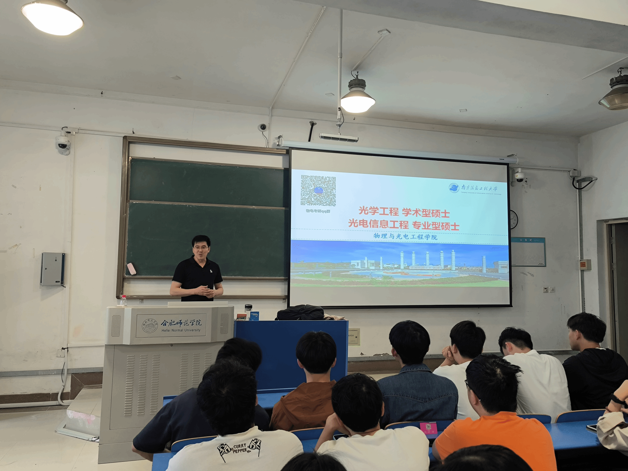 5月30日下午,allwincity万象城官方网站在逸夫楼A104举办研究生报考系列宣讲会,邀请南京信息工程大学物理与光电工程学院副院长赖敏教授为考研学子作现场宣讲。2021级光电信息科学与工程专业学生全体参加,宣讲会由副院长余龙宝主持。