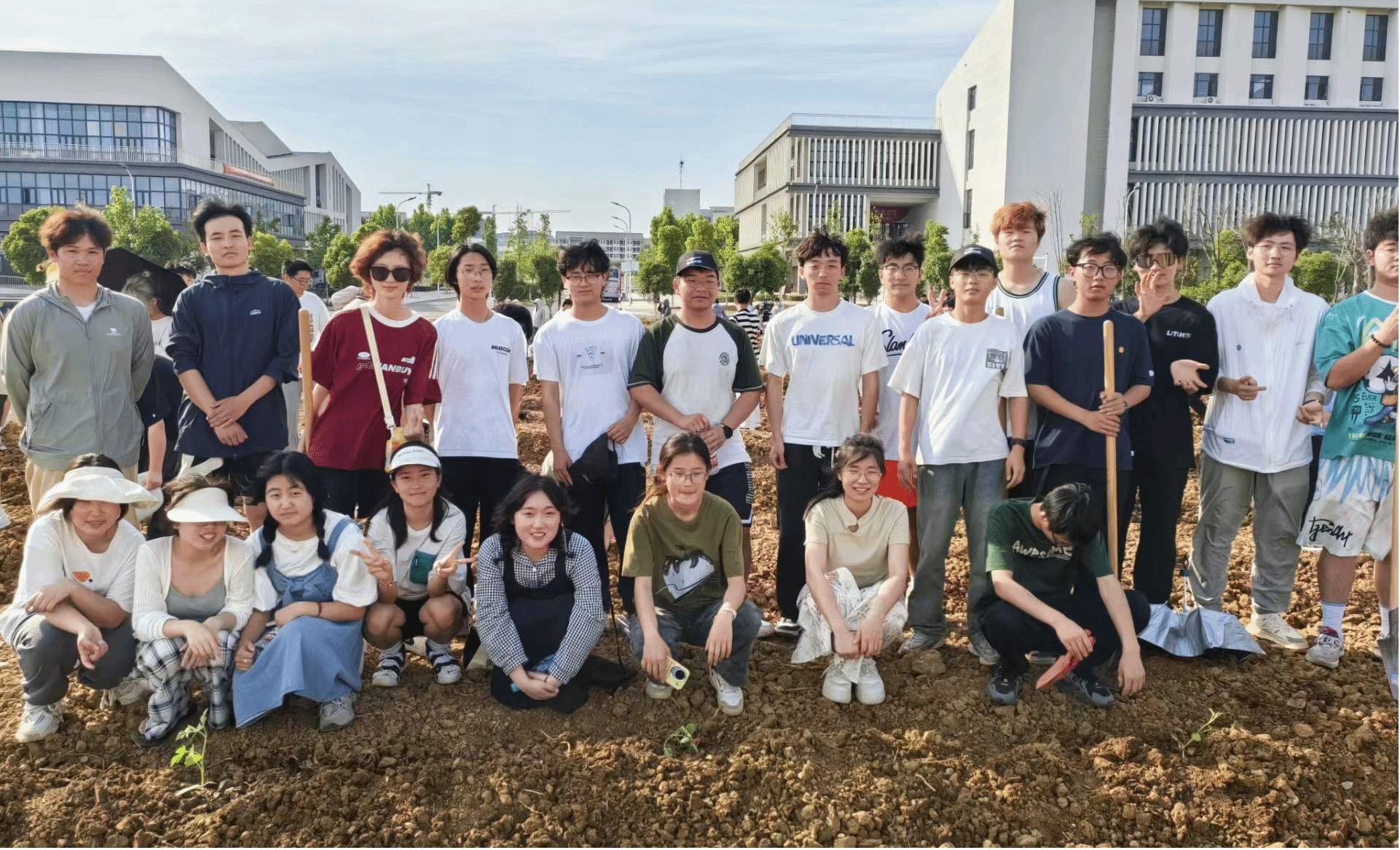 依托学校最新规划的劳动教育基地,学院组织志愿者参加了规整成陇、秧苗种植和护理灌溉实践活动。同学们在烈日下使用农具有条不紊地开展了种植活动,汗水挥洒在田间,笑容绽放在脸上。