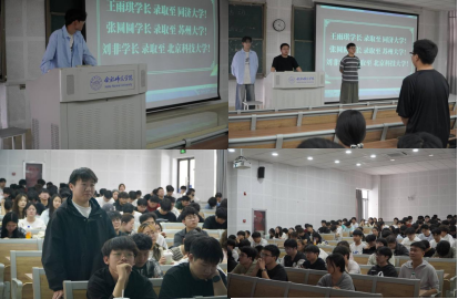 在材料专场,马滢滢结合自身实际情况,关于跨专业考研从确定院校、考试科目及备考建议三个方面为同学们进行了介绍,并对同学们如何平衡科研和备考的问题给出了自己的时间管理方法和建议;王晓宇针对各科目的复习规划及学习资源进行了“干货”满满的分享,同时也对同学们关于复试问题的疑惑进行了详细的解答;李诚信用风趣幽默的语言将现场轻松愉快的氛围推到了高潮,大家积极发言,与学长进行了深切交流,学长也从备考过程中各种可能遇到的困难为大家进行答疑解惑,同时拿自己打趣缓解同学们心中的焦虑和困惑。