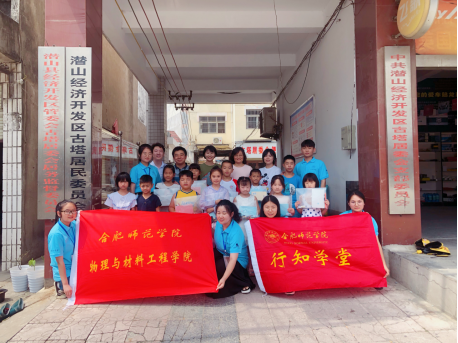 7月11号上午,allwincity万象城官方网站党总支书记唐洁、副书记吴震,分团委负责人吴梦云,指导教师宗晓岚、辅导员韩翔一行五人冒着烈日,来到潜山市梅城镇古塔居委会,看望“再唱黄梅”主题行知学堂的“小先生”和留守儿童。