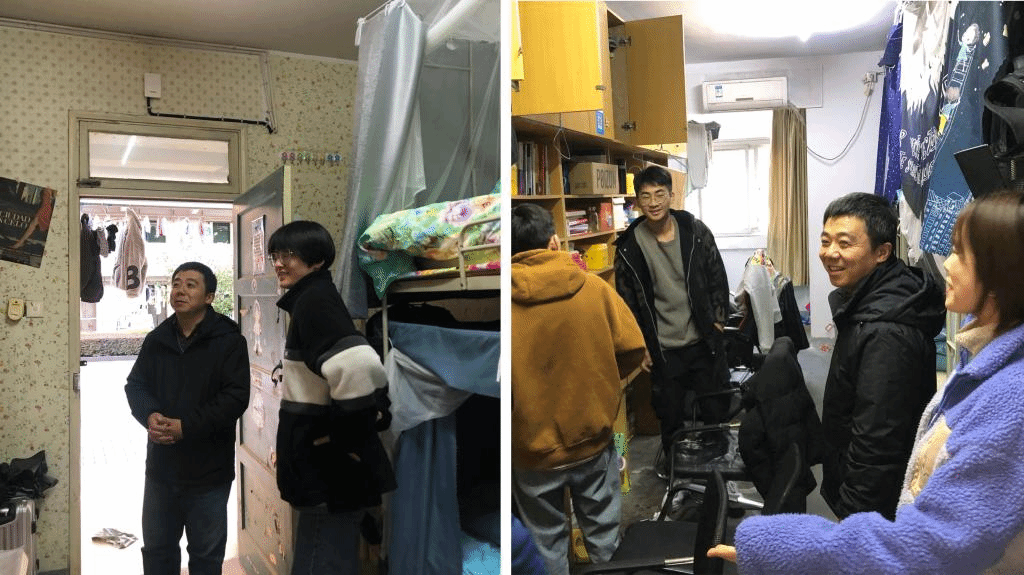 在走访过程中,吴震每到一个宿舍就会详细询问大家的就业状况、学习情况和生活近况,询问他们生活上、就业中存在的困难,并针对每人的不同情况提出自己的建议。他叮嘱同学们要严格遵守学校宿舍安全管理的各项规定,提高安全防范意识。