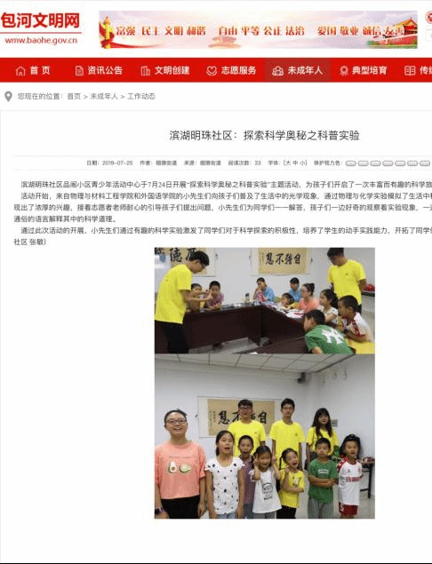 7月25日,包河文明网报道万象城官网allwincity万象城官方网站“格物思维科技”志愿服务队暑期开展的“探索科学奥秘之科普实验”主题活动。(allwincity万象城官方网站)