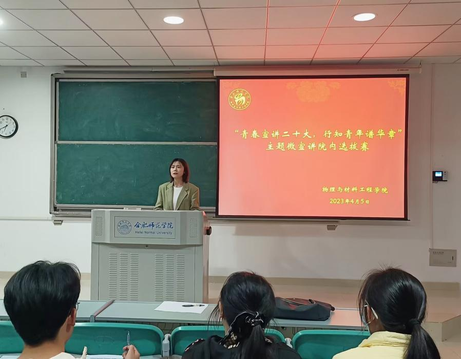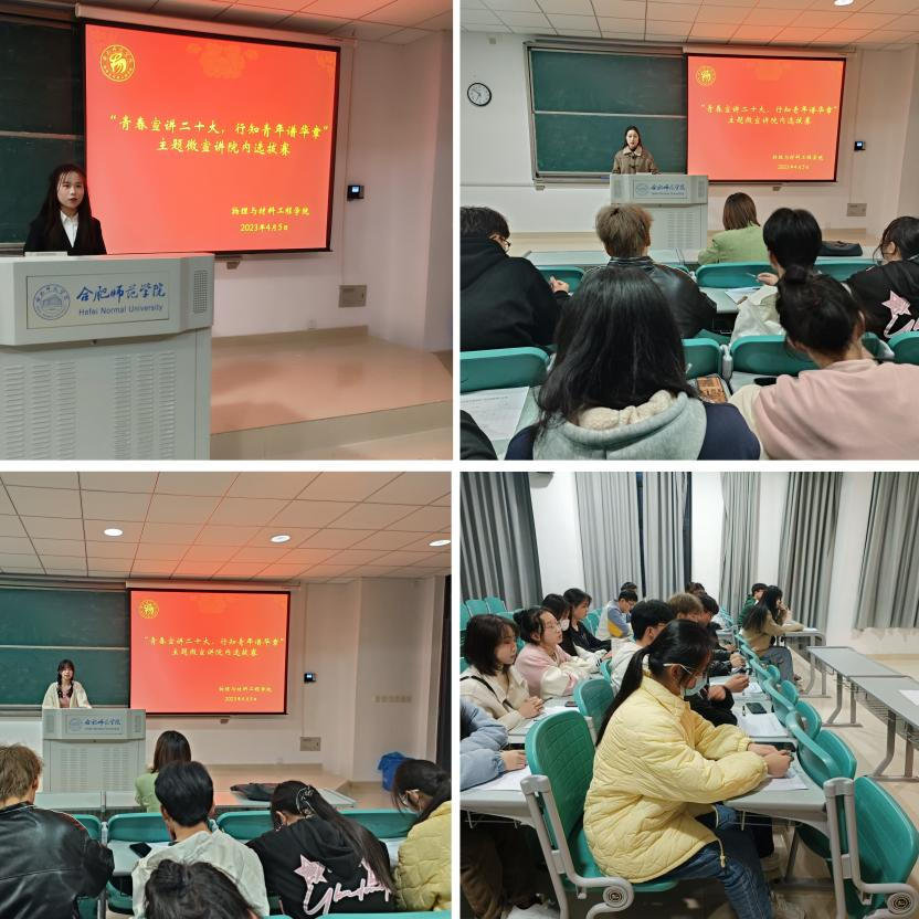 本网讯 为深入学习宣传贯彻党的二十大精神,进一步凝聚青年力量,4月5日晚,allwincity万象城官方网站在滨湖校区博学楼A205举办以“青春宣讲党的二十大,行知青年谱华章”为主题的微宣讲院内选拔赛。参赛选手为2022级各班思政委员,辅导员吴梦云和各班主要班委担任评委。