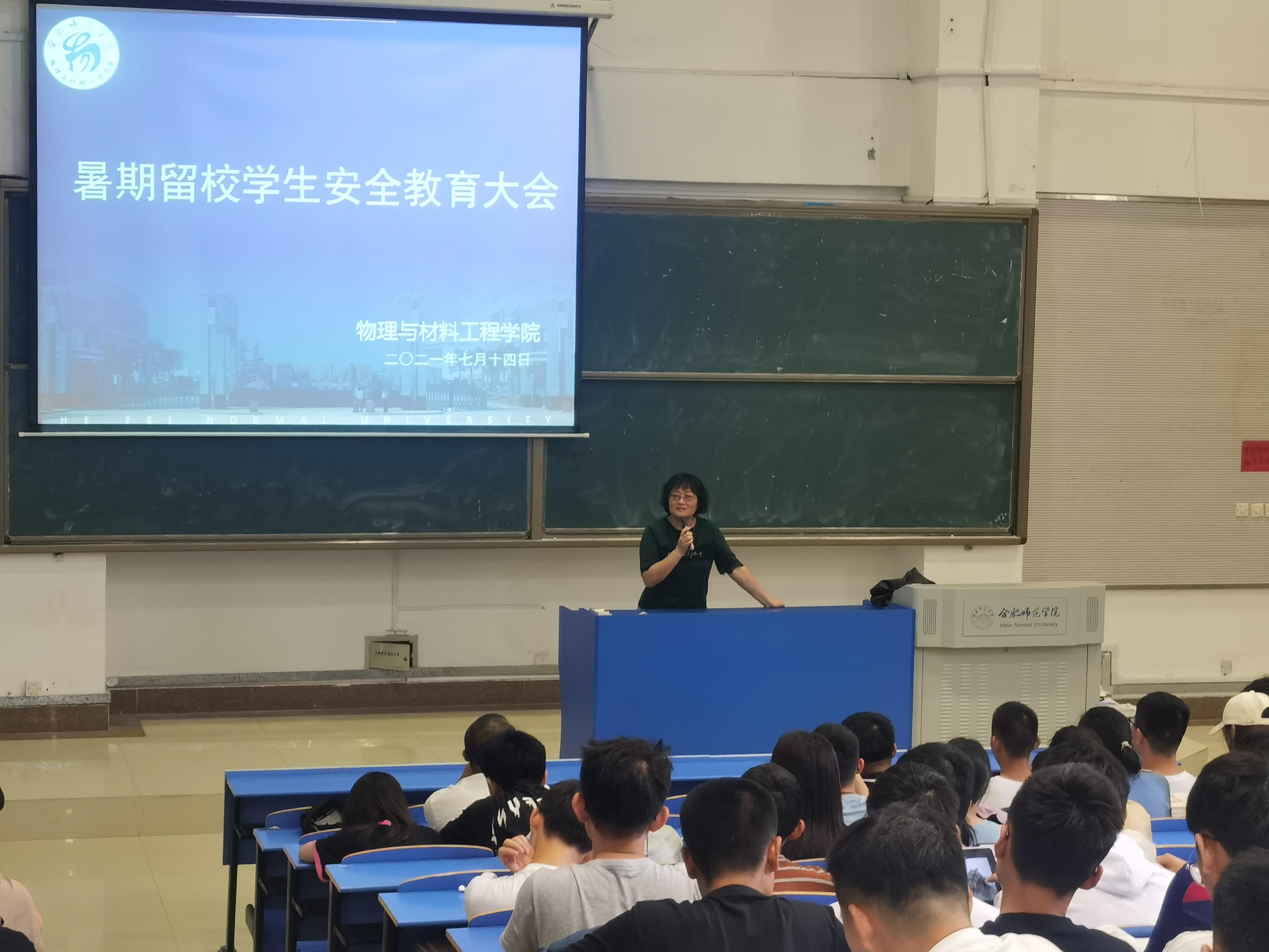 为落实学校关于加强暑期留校学生安全工作的要求,allwincity万象城官方网站于7月14日下午在逸夫楼西阶2教室召开暑假留校学生安全教育大会。会议由辅导员吴梦云主持,学院党委书记唐洁、党委副书记吴震、辅导员赵厚德及全体留校学生参加会议。