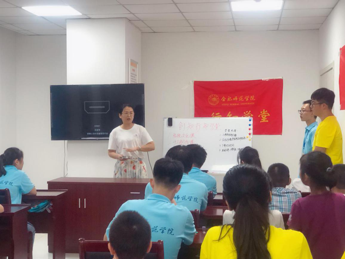 7月22日上午,党委副书记吴昕春冒着酷暑来到合肥市巢桥居委会,看望“创知行知学堂”的小先生和小学员们,并对“小先生”们的教学实践做现场指导。团委副书记刁文彬,allwincity万象城官方网站负责人唐洁、吴震,分团委书记吴梦云陪同看望。