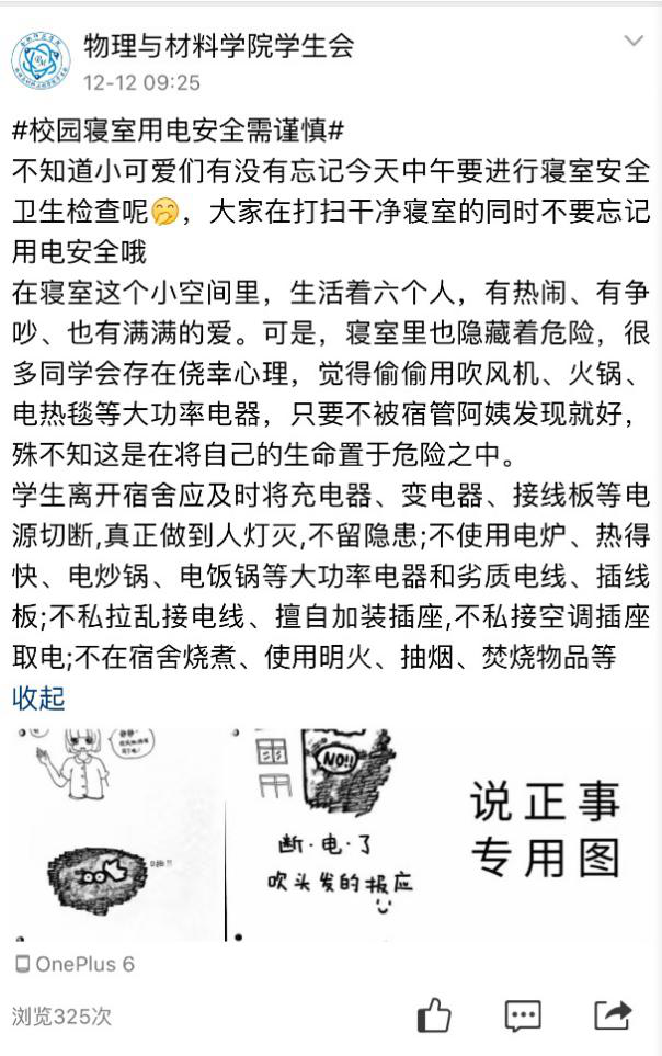 为了切实提高万象城官网学生的防火用电安全意识,真正掌握安全知识,学院利用自媒体多渠道加强宣传教育,温馨提示进班级进宿舍,通过班级群、官Q、海报等多途径开展安全知识宣传,将温馨提示带到每个宿舍。