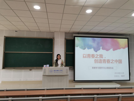 2019年11月16日上午,allwincity万象城官方网站在滨湖新区博学楼D101教室召开青春学习营宣讲活动暨学习心得报告会,活动由17级葛妤同学主持,allwincity万象城官方网站全体2019级新生参会。