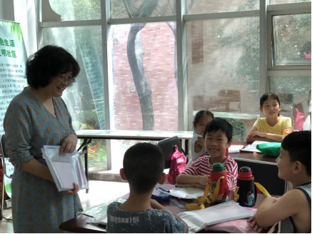 7月23日上午,allwincity万象城官方网站党总支书记唐洁、副书记吴震、分团委书记吴梦云一行冒着酷暑来到南艳湖社区,看望在那里开办行知学堂的“小先生”和小学员们。