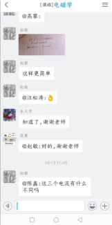 在布置完此次的学习任务后,老师就让同学们去观看,发布在学习通中的视频,在课本节课还剩下40分钟的时候,老师会在学习通中选人并提出相关的问题。其他没有被选中的同学,也可以在学习通群聊中自由发言。被选中的同学都认认真的回答了问题,老师也在他们回答的答案中做了更进一步的详细解释,使同学们更加能够容易理解与掌握这个知识点。每次都选人环节,同学们在里面回答问题,气氛十分活跃,感觉我们还是在学校上课一样。同学与同学之间,同学与老师之间并没有因为疫情相隔两地,而相互之间变得陌生。