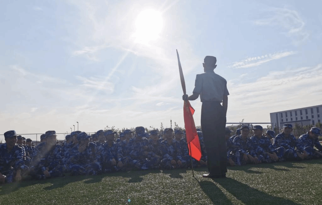 军训期间,骄阳似火。在教官的严格指挥下,同学们踏着严谨统一的步伐,喊着铿锵有力的口号,整齐有序地操练队列,刚强有力地练习军体拳,每一次立正、稍息、转体、齐步走都力争高标准、严要求的完成,赢得教官的认可和赞许。
