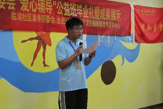 汇演伊始,小先生代表郜栋梁同学做总结汇报,郜栋梁全面汇报了本次行知学堂的工作成果,肯定了小学员们的努力与收获,并对社区、小学员家长的支持表示了感谢。