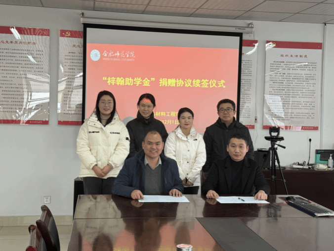 在现场双方的见证下,胡毅与吴长龙分别代表公司和学院签订“梓翰助学金”捐赠协议。