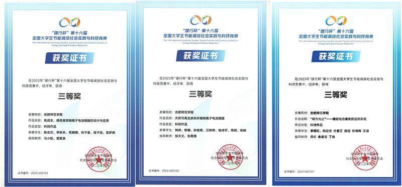 作为唯一由高等教育司办公室主抓的全国大学生学科A类竞赛,该赛事已发展成为起点高、精品多、覆盖面广且影响力大的全国大学生实践创新活动。学校高度重视该项赛事,认真组织各学院报名参赛,共有19件作品参加了前期校内竞赛选拔。最终由马小航、訾振发老师指导的作品《低成本、绿色高效钠离子电池隔膜的设计与应用》,张天文、张雪倩老师指导的《天然可再生纳米纤维钠离子电池隔膜》,蒋杉、余龙宝老师、丁楠老师指导的《“碳为光止”——储能电池健康度监测系统》3件作品代表学校参加国赛并全部获奖。