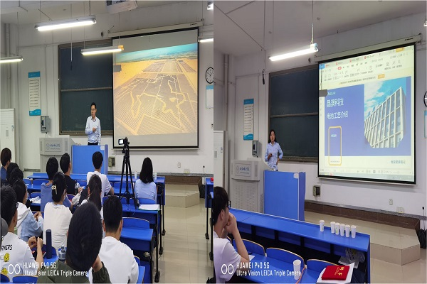 尹朝斌工程师就光伏组件的分类、封装结构及生产工艺等方面进行了详细介绍,并结合自己在企业成长经历,与学生进行了多次互动;王静工程师就晶硅太阳能电池的发展史及各种电池工艺技术进行了介绍,尤其对TOPCON技术进行了详细的介绍。两位企业讲师的课堂教学结合企业一线生产实际,深入浅出,受到了同学们的一致好评。