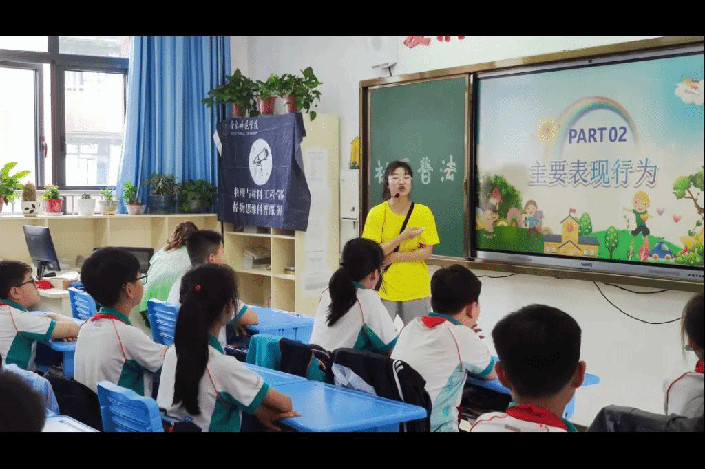 5月17日,科普服务队来到临湖社区卧云小学以“‘未’你而来,守护成长,关爱未成年人”为主题开展“普法进校园”科普课程。科普服务队向孩子们讲解了校园欺凌的种种行为和科学应对方法。通过队员们形象生动的趣味普法,教育引导同学们运用法律保护个人正当权益。