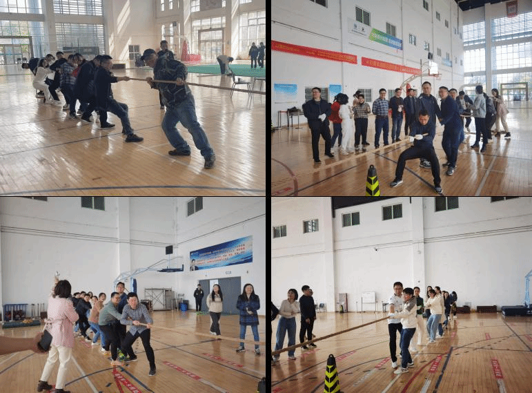 比赛以各系为单位组队。拔河比赛在大家响亮的加油助威声中依次进行,老师们一改平时的矜持温和,使出浑身力气把绳子向后拉,心往一处想,劲往一处使,相互配合、相互鼓劲、团结和谐,整个比赛场面气氛热烈。