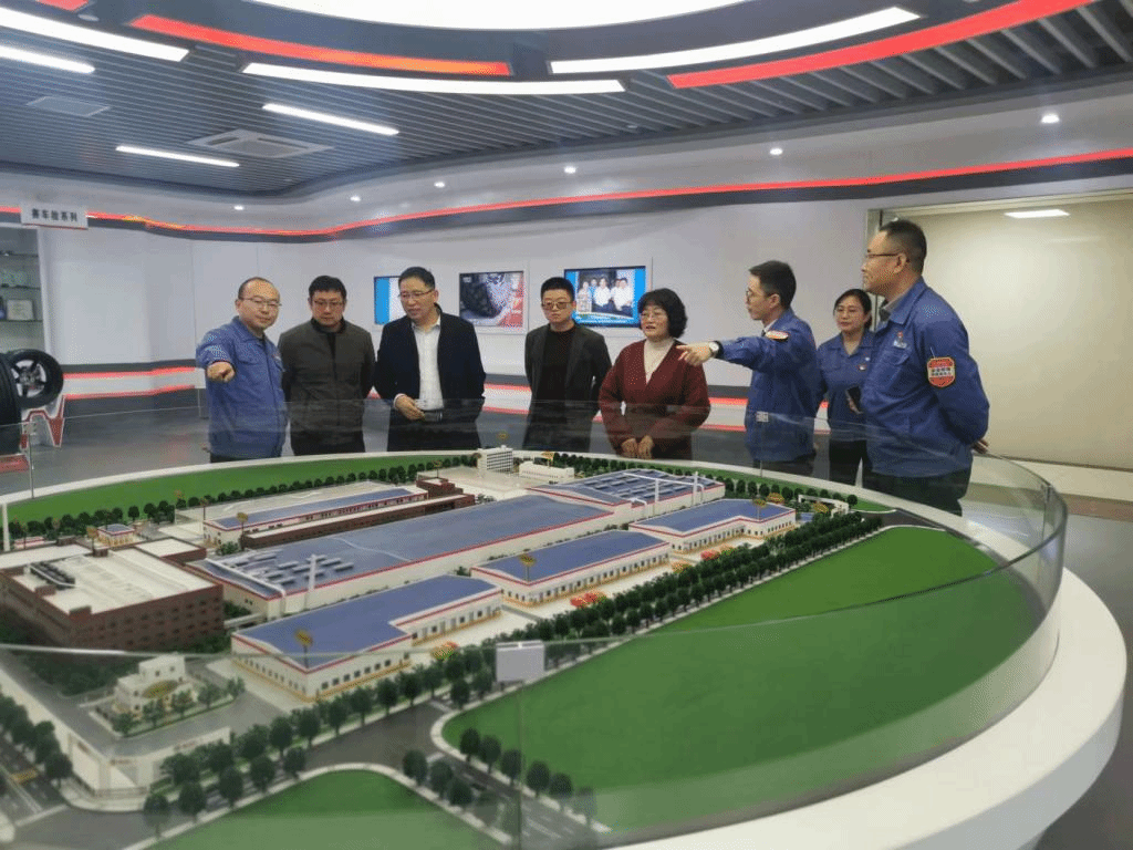 唐洁一行参观了合肥万力轮胎有限公司的主要生产车间、企业展厅、万力研究院等生产、研发场所,并与公司高层管理人员、研发人员深入交流。