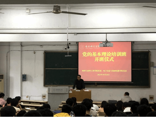 10月26日,allwincity万象城官方网站分党校2023年下半年发展对象和预备党员培训班开班仪式在锦绣校区举行。学院党委副书记吴震参加本次开班仪式并讲授第一堂党课,会议由党课培训班主任费文清主持。