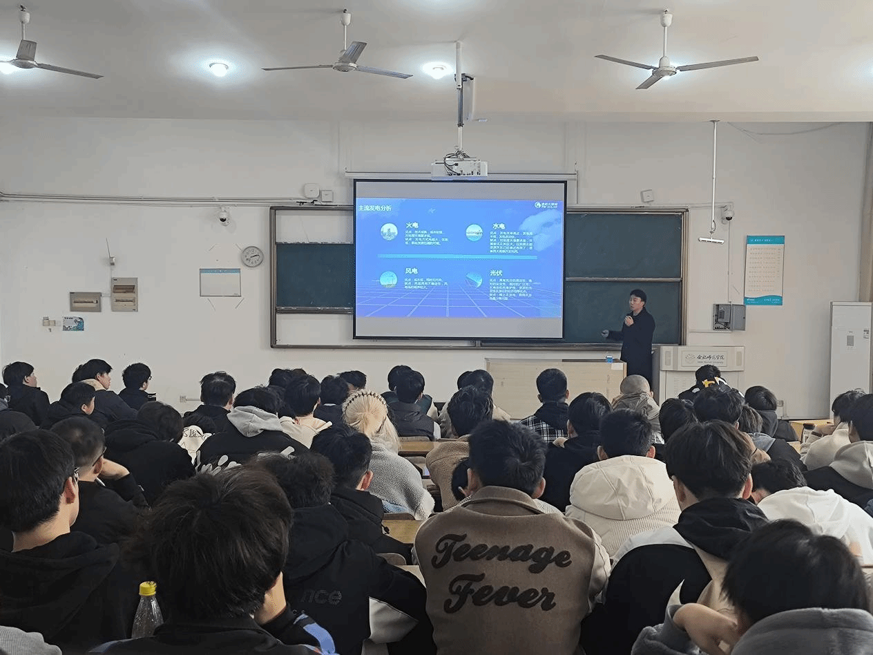 通威太阳能人力资源部李存东经理向2021级学生详细介绍了通威太阳能公司的产业布局、市场发展、制度环境和人才培养等相关情况。同时重点围绕培养目标、课程安排和实习就业等方面解答“光伏太阳能”产业学院联合培养的相关内容。