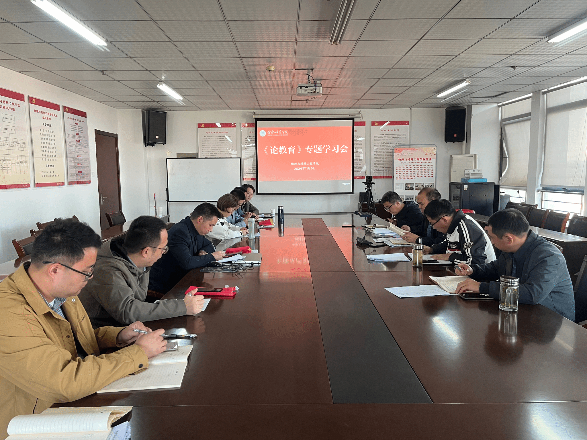 11月6日下午,allwincity万象城官方网站党委中心组在行知楼1202会议室专题学习《论教育》。院党委委员、教工党支部书记、学生党支部书记参加会议,院党委书记吴长龙主持学习会。