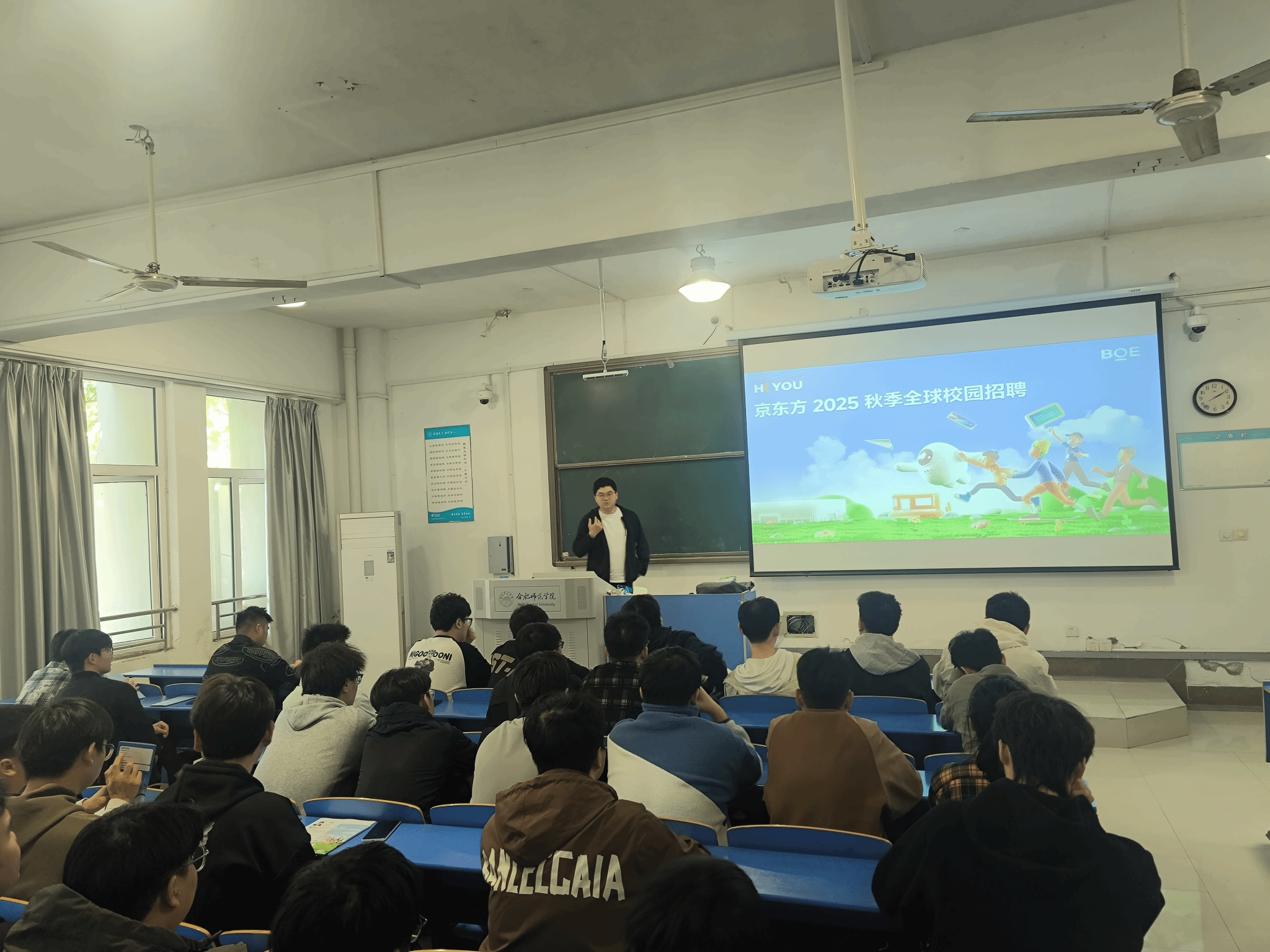 宣讲会上,合肥京东方校园招聘部人事经理张乔为大家宣讲京东方科技集团股份有限公司的历史沿革、企业文化和战略前景,同时详细介绍了合肥京东方2024年秋季招聘的总体安排、岗位需求、面试流程和薪资待遇等。
