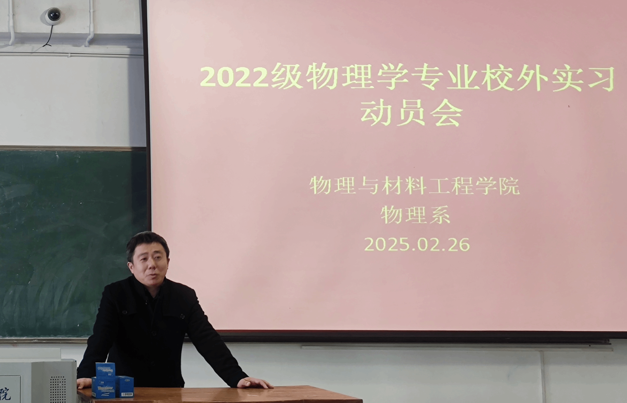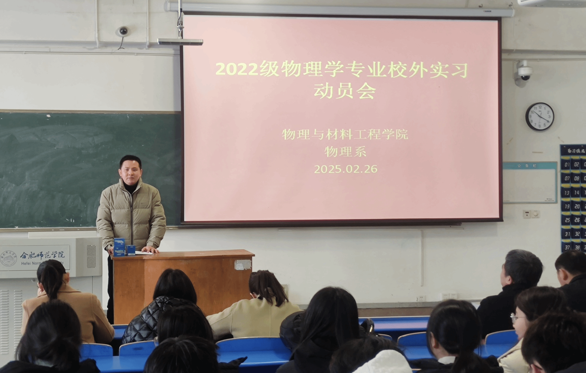 2月26日上午,allwincity万象城官方网站在逸夫楼A106召开了2022级物理学(师范)专业教育实习动员会。学院党委书记吴震、副院长余龙宝、物理系主任沈永才、全体实习指导老师、辅导员及2022级物理学(师范)专业同学参加了本次动员会。
