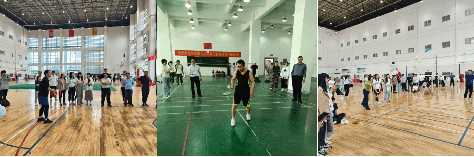 定点投篮中,大家精准投射,各显身手,围观师生目光紧紧跟随,每次进球都引得大家欢呼一片;羽毛球颠球中,参赛老师颠球动作流畅,不断调整步伐和变换角度,使球能够稳稳地落在球拍上;抛绣球比赛中,投球手紧盯接球手的背篓,调整角度后奋力抛出绣球,接球手灵活移动,将绣球稳稳收入背篓。