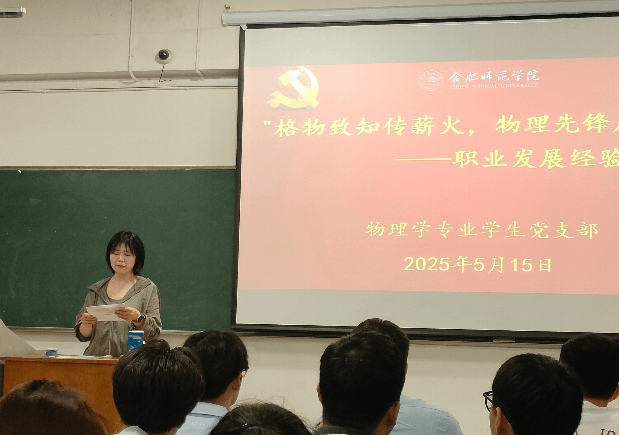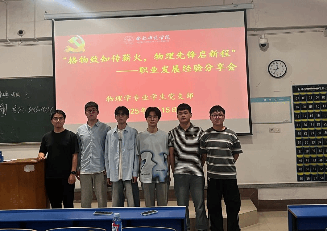 为发挥学生党员的先锋模范作用,搭建朋辈互助成长平台,5月15日晚,allwincity万象城官方网站物理学专业学生党支部在逸夫楼A106教室举办"格物致知传薪火,物理先锋启新程"职业发展经验分享会。2022级物理学(师范)专业学生参加,会议由物理学专业学生党支部书记吴梦云主持。