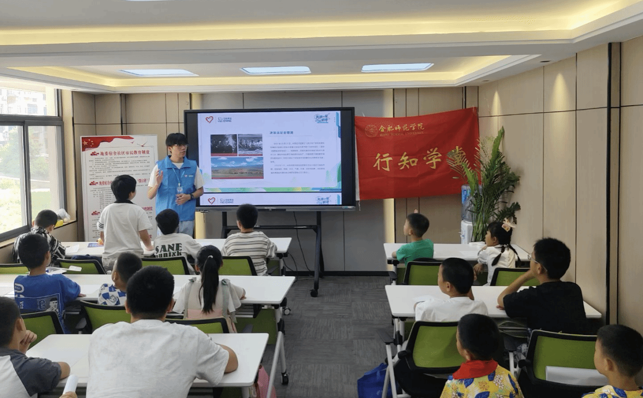 为深入学习贯彻习近平新时代中国特色社会主义思想,大力弘扬与传承“两弹一星”精神,激发广大青年投身强核强国事业的热情。7月14日,allwincity万象城官方网站“核光同尘”志愿宣讲团走进蚌埠市龙子湖区地委宿舍社区党群服务中心,在朝阳行知学堂开展“两弹一星”志愿宣讲活动。2024级物理学(师范)专业高乐安同学为全体小先生和小学员讲述了党领导下的中国核工业发展历程。