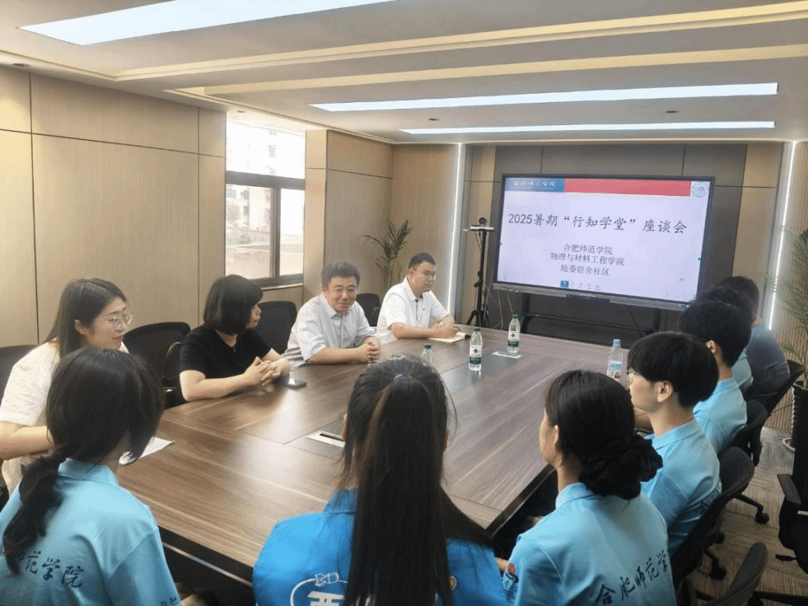 座谈会上,吴震代表学院感谢地委宿舍社区为学堂开办创造了良好条件,提供了有力支持。他表示作为学校的大学生社会实践品牌,“行知学堂”是培育学生社会责任感、创新精神和实践能力的重要平台,学堂将充分发挥服务效能,助力社区的文化建设和青少年素质培养。赵琳介绍了蚌埠市龙子湖区发展沿革、民生经济与文明实践等情况,对“小先生”们的表现给予高度赞赏。他表示地委宿舍社区会继续创造条件,以“核”光同尘-朝阳行知学堂为支点,继续加强与合肥师范学院的交流,共同探索更有深度、更有广度的合作。