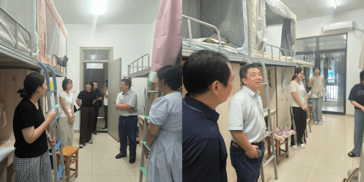 下午,学院党政领导班子率队,走访慰问新生,了解住宿情况,送去关心关怀。领导老师们与新生亲切交谈,详细询问学生个人情况和入学感受,认真倾听学生需求,叮嘱安全注意事项。吴震寄语同学们要树立明确目标,调整身心状态,尽快融入班级集体和校园生活,自立自强,踔厉奋发。