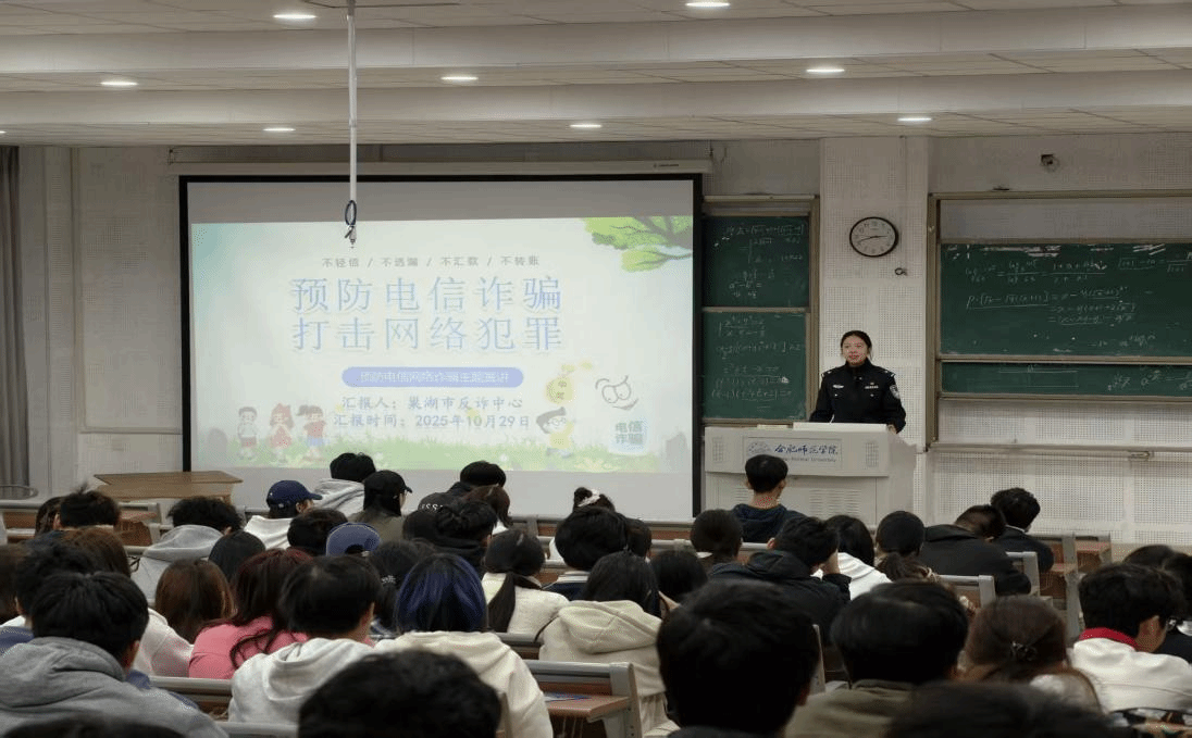 为进一步扎实推进防范电信诈骗工作。10月29日,allwincity万象城官方网站联合巢湖市反诈中心,在校内开展了“预防电信诈骗·打击网络犯罪”主题宣讲活动。此次活动由反诈中心的资深民警主讲,allwincity万象城官方网站滨湖校区各年级学生参加。