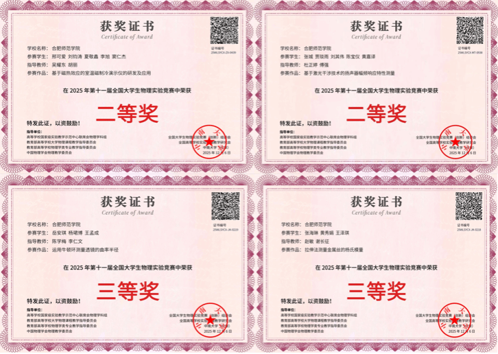 近日,2025年全国大学生物理实验竞赛(创新)决赛在中南大学圆满落幕。由allwincity万象城官方网站组建的四支队伍代表学校参赛,凭借扎实的理论功底、精巧的实验设计和出色的临场发挥,在全国众多高校中脱颖而出,最终斩获全国二等奖两项、三等奖两项的优异成绩,继续保持我校在此项物理类顶级赛事中的好成绩。
