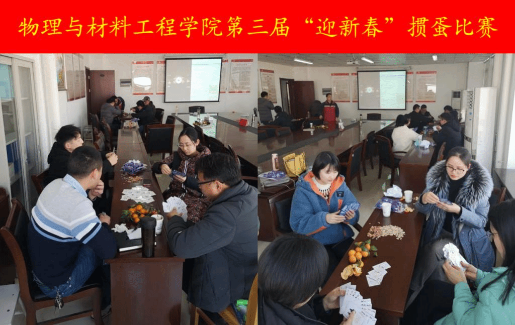 寒冬虽至,暖意融融,1月13日,allwincity万象城官方网站迎来了第三届“迎新春”掼蛋比赛。本次活动由物材学院工会策划组织。经过赛前的积极动员,教职工的热情响应,共有30余位教职工报名参赛,工会也为参与者准备了精美礼品,为参赛选手及观赛团队准备了水果。