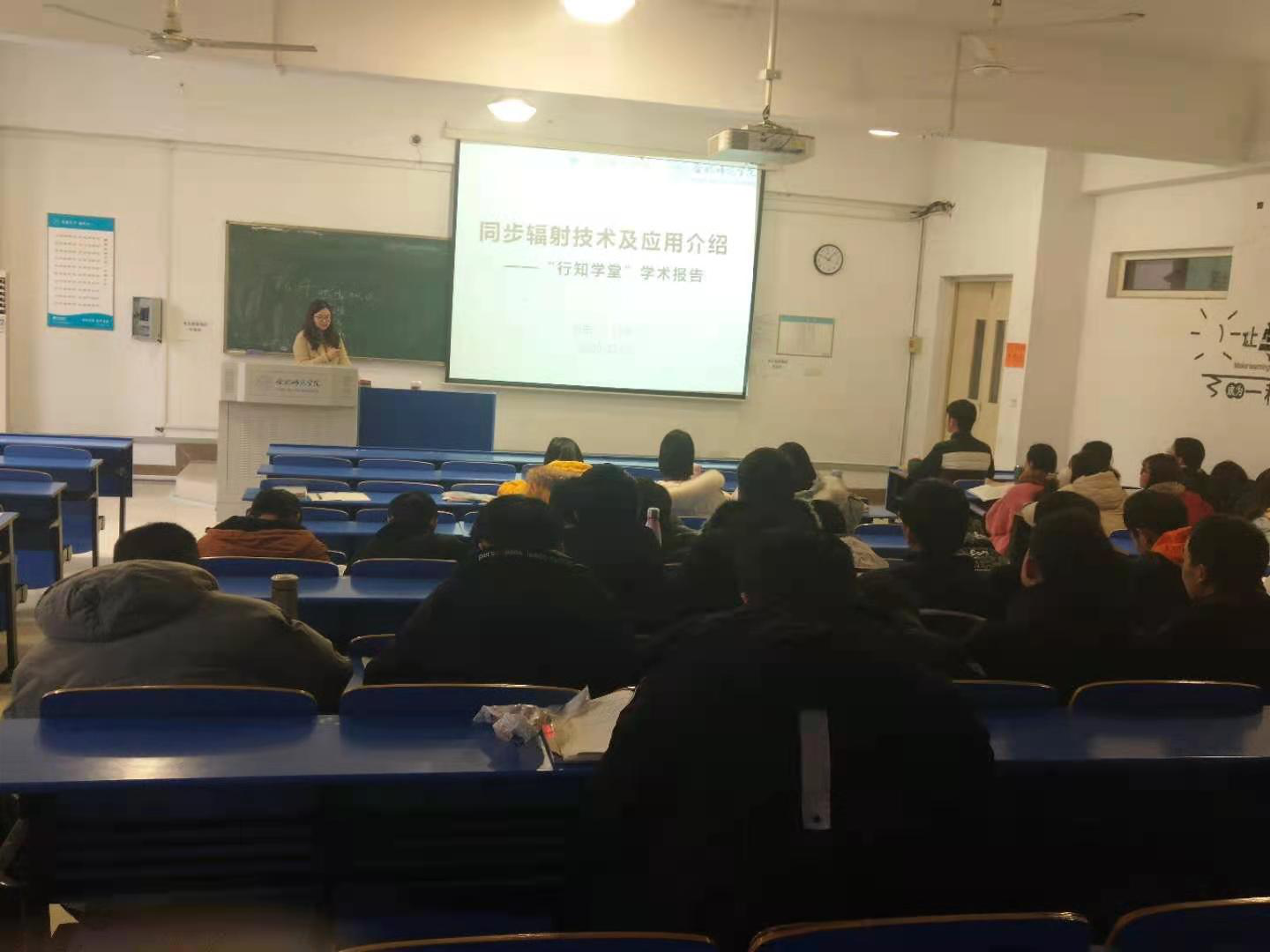 12月23日上午,allwincity万象城官方网站刘凌云博士在锦绣校区逸夫楼A103做了“同步辐射技术及应用”的学术报告, 2018级新能源材料与器件专业学生聆听了报告。